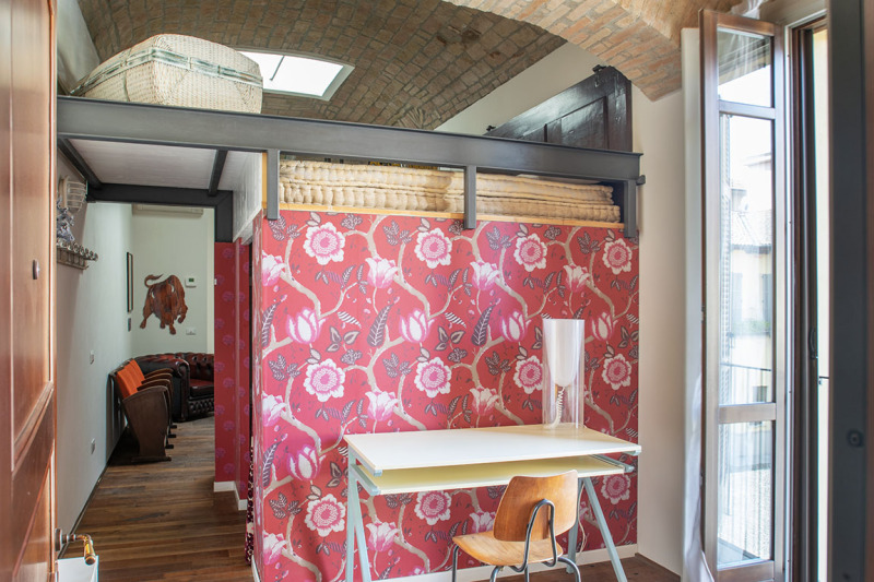 L'ambientazione della parte abitativa principale è divisa tra ingresso con zona studio, zona living e soppalco con area notte con sottostante cabina armadio. La cucina è separata dal reparto giorno/notte con un disimpegno ed è abitabile con adiacente terrazzino vivibile. Completano la proprietà il bagno e il ripostiglio.