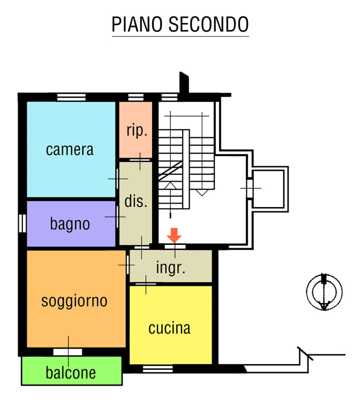 | Caratteristiche peculiari: | Bilocale di ampia metratura; posizione ottima a pochi passi dal centro. |