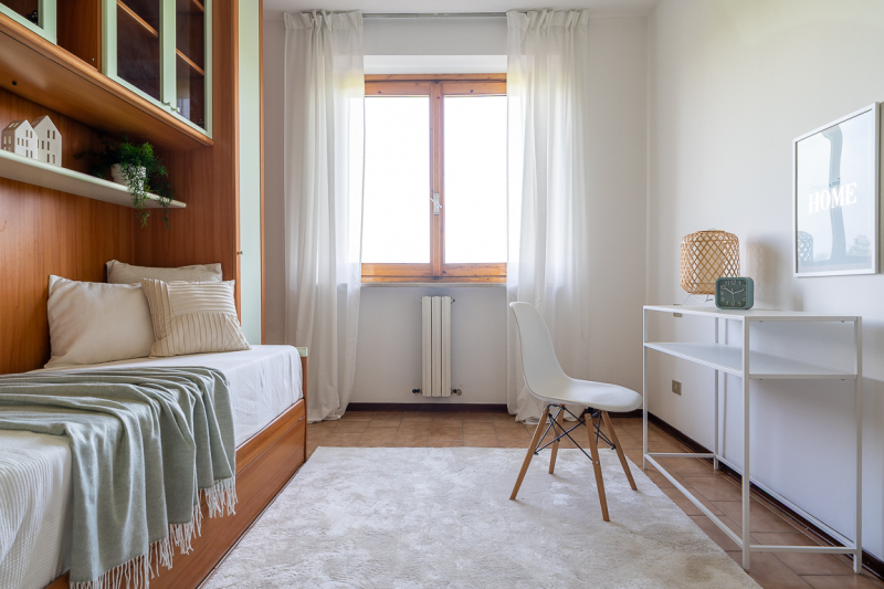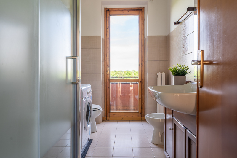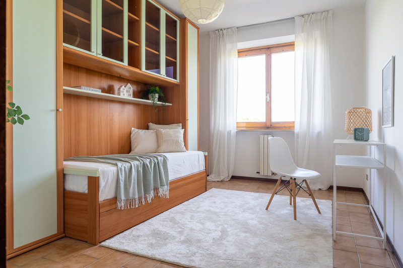 Parte di un’ottima palazzina degli anni '80, sito al piano secondo servito da ascensore, è così composto: ingresso, ampio soggiorno, cucina abitabile, camera da letto matrimoniale, seconda camera con annessa cabina armadio, bagno e due balconi di cui quello esposto ad est offre una vista aperta e suggestiva sulla campagna e le colline di Nazzano, un’area tutelata da vincoli paesaggistici, che garantisce una visuale libera e inalterabile nel tempo; completano la proprietà una cantina al piano interrato, un Box auto sito al piano terra e parte del fabbricato condominiale residenziale, nonché un secondo box (acquistabile a parte per euro 10.000), anch’esso al piano terra, con accesso diretto a porzione di terreno privato: perfetto come orto, giardino, spazio giochi o area relax/hobby.