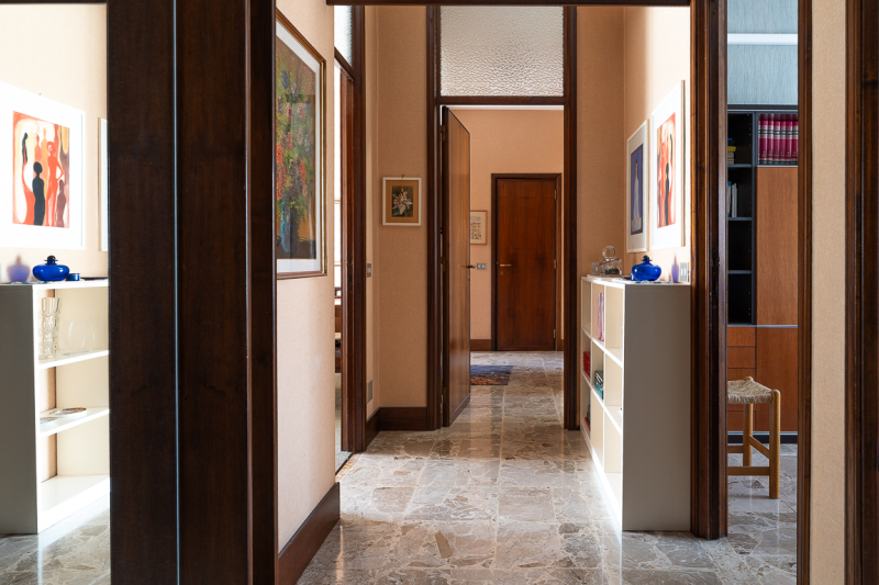 L’immobile presenta finiture originali all'epoca di realizzazione, gli infissi sono in legno, mentre la pavimentazione è varia tra marmo, parquet e ceramica.