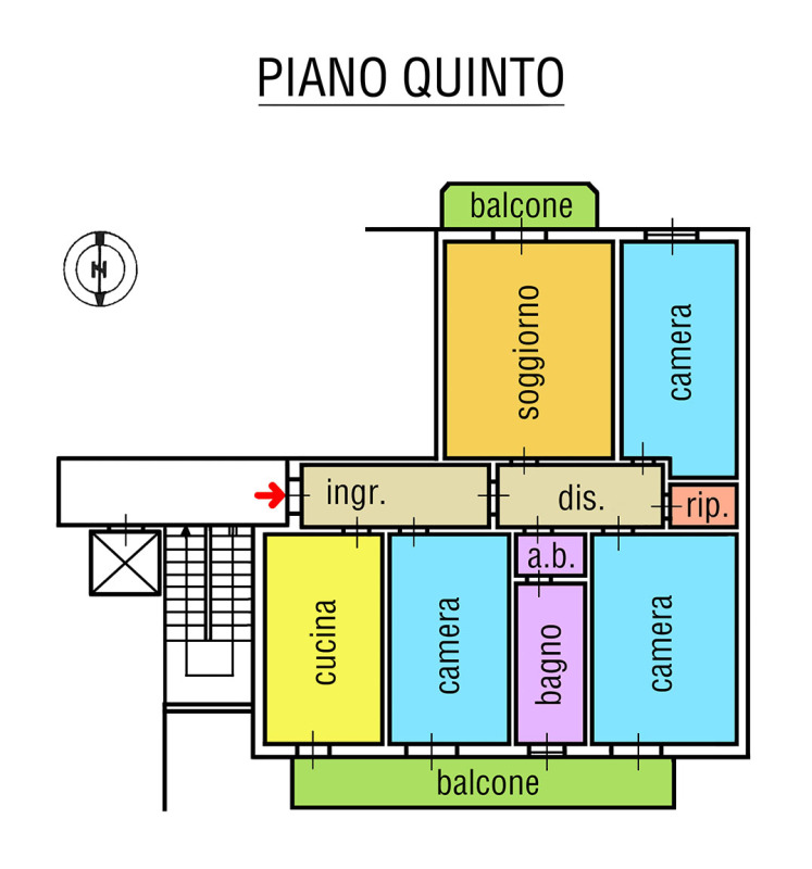 l’appartamento è di circa 119 mq, composto da ingresso su zona giorno dove troviamo sulla destra la cucina abitabile e il luminoso studio, entrambi con uscita su balcone comunicante; sulla sinistra ampio soggiorno con affaccio sul secondo balcone.