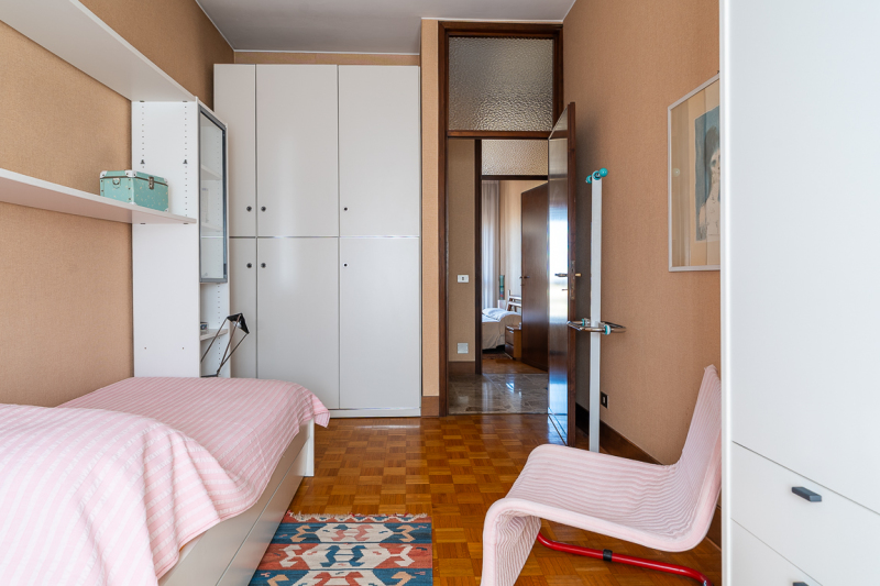 Attraverso il disimpegno si accede alla zona notte dove sono presenti due camere da letto, bagno ed infine il ripostiglio. L'appartamento viene venduto arredato.