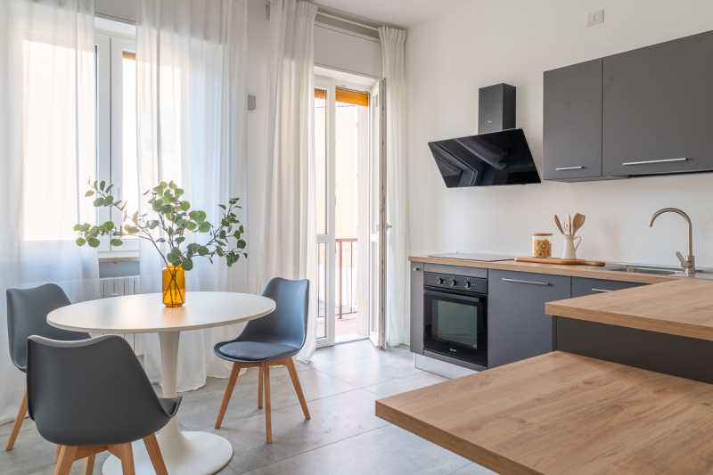 | Caratteristiche peculiari: | Ottimo appartamento ristrutturato a nuovo; già accessoriato di cucina e mobile bagno; elegante ed accogliente in stile moderno; prezzo assolutamente adeguato! |