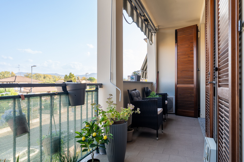 Sito al piano secondo servito da ascensore, attualmente l’appartamento è così composto: cucina abitabile, soggiorno, due camere letto (di cui una matrimoniale ed una singola), due bagni e due balconi; l'autorimessa con annesso locale di ripostiglio/cantina completa la proprietà.