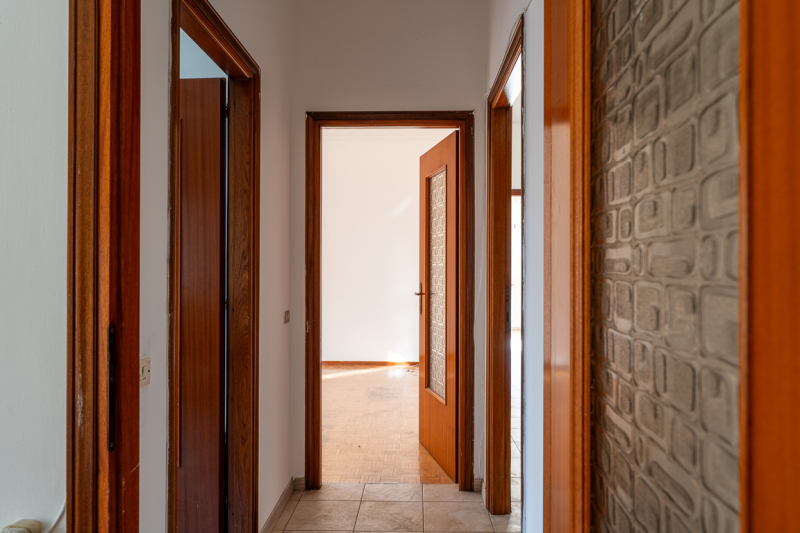 La palazzina è stata realizzata nel corso della fine degli anni '70 e l'appartamento si presenta ad oggi molto ordinato, accogliente e ristrutturato in molte delle sue finiture, pavimenti moderni, bagno rifatto, soprattutto si evidenziano serramenti legno doppio-vetro!