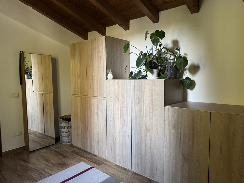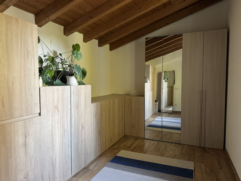 L’immobile è parte di una palazzina di recente realizzazione (costruita a nuovo nel 2014), composta di sole quattro unità abitative, sito al primo ed ultimo piano caratterizzato da un meraviglioso soffitto in travi di legno a vista: soggiorno con angolo cottura open space, due camere da letto, bagno, ripostiglio, nonché cantina e autorimessa al piano seminterrato.