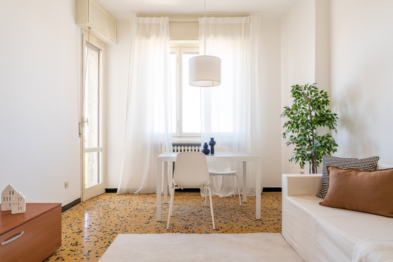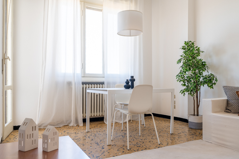 L'appartamento si presenta molto ordinato ed accogliente sebbene le finiture interne risalgano all'epoca di costruzione; l'elemento dominante è senz'altro caratterizzato da un'ottima distribuzione degli spazi interni con locali ampi e luminosi.