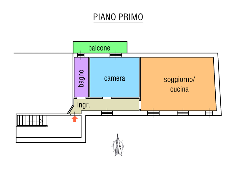 Sito al primo piano senza da ascensore è così composto: ingresso, ampia cucina-soggiorno, camera letto matrimoniale, bagno e balcone; vano di cantina al piano seminterrato e autorimessa al piano terra.