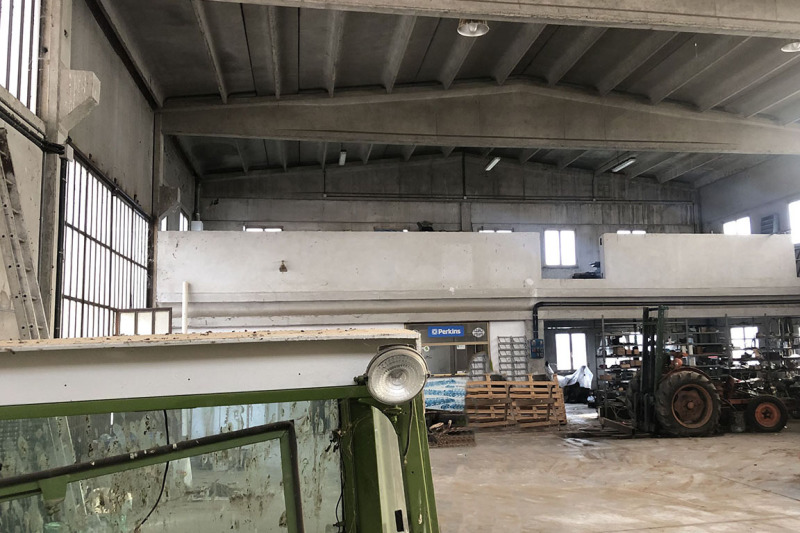 Il Capannone ha una superficie coperta di circa 415 mq. con un ampio locale ad uso officina, un magazzino, un ampio soppalco funzionale per lo stoccaggio di merci, due uffici e servizi: trattasi catastalmente di categoria D/1 per cui si intendono i fabbricati costruiti o che vengono adattati per la produzione di manufatti industriali, officina, stabilimento, laboratorio.