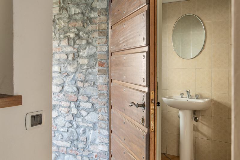 Le pareti in mattoni pieni raccontano storie di epoche passate, una testimonianza silenziosa della tradizione. Questa casa incarna un'architettura che sfida le mode, rimanendo un esempio di eleganza senza tempo.
