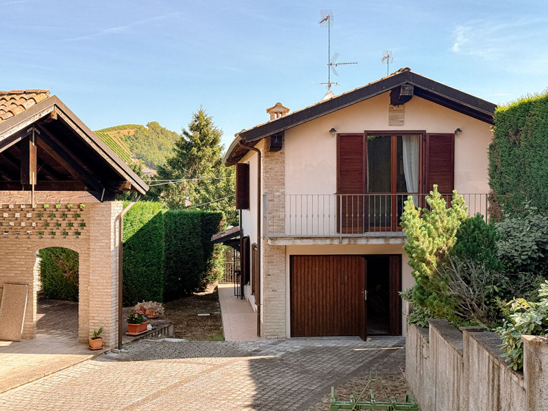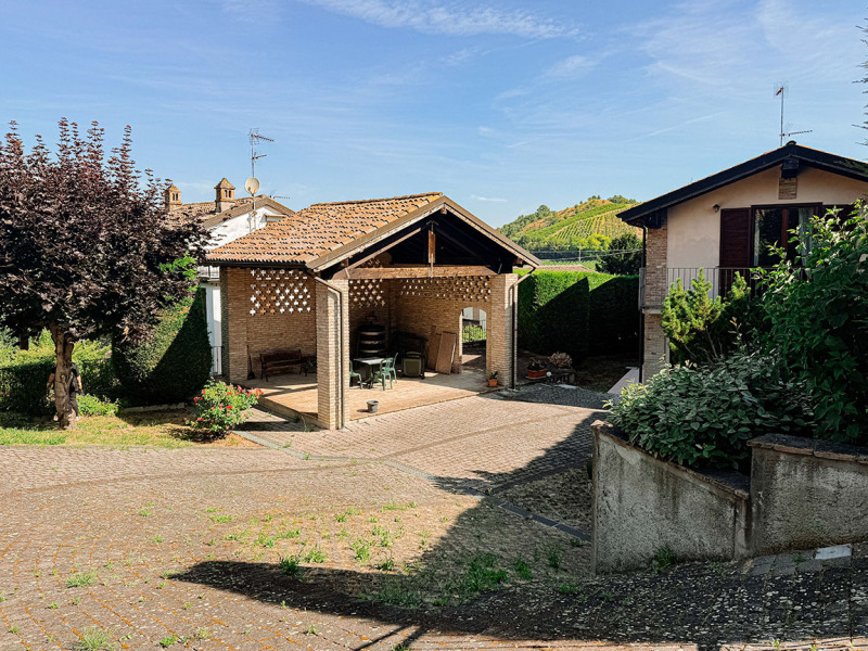 Caratterizzata da una vista incantevole dominante lo scenario collinare adiacente, la Casa è disposta su due livelli fuori terra per un totale di circa 150 mq. commerciali, oltre cantina e pertinenze e precisamente così composta: cucina abitabile a vista su soggiorno con camino, bagno, lavanderia e box doppio al piano terra; tre camere, bagno, disimpegno e balcone al piano primo; fabbricato rustico in corpo staccato all'abitazione disposto su un unico livello fuori terra di circa 40 mq. ad uso area barbecue; in corpo staccato dall’abitazione ottimo e moderno capannone con adiacente porticato di circa 80 mq. ad uso magazzino; cortile accorpato e recintato di circa 500 metri quadrati.