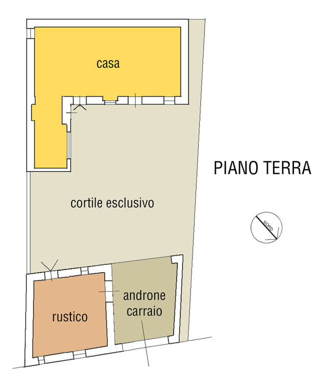 Il rustico, in corpo staccato dall'abitazione, adiacente all’androne carraio ha una superficie coperta di circa 40 metri quadrati con sovrastante ex fienile.
