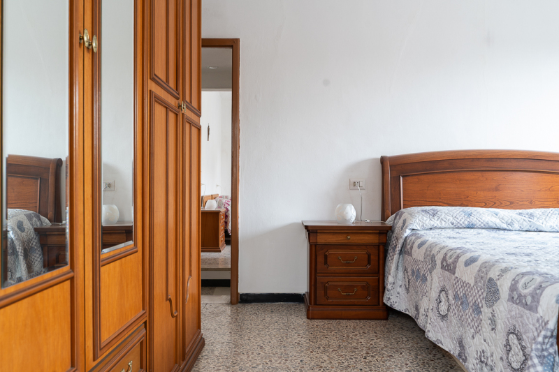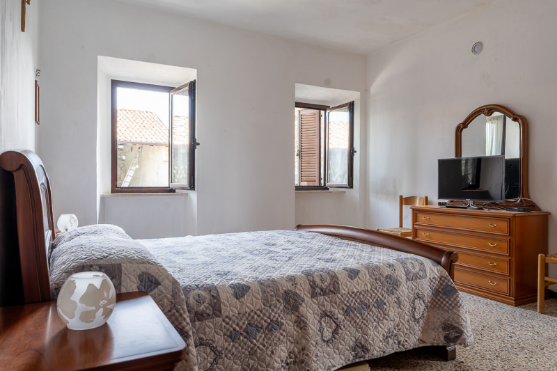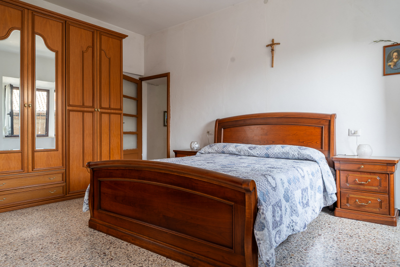 L’abitazione è disposta su due livelli per una superficie totale di circa 130 mq (70 mq al Piano Terra e 60 mq al Piano Primo) e composta da cucina, tinello, soggiorno, bagno al Piano Terra e da due camere da letto matrimoniali al Piano Primo, oltre soffitta e cantina; il cortile accorpato e recintato con sovrastante rustico completa la proprietà.