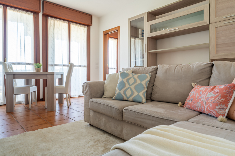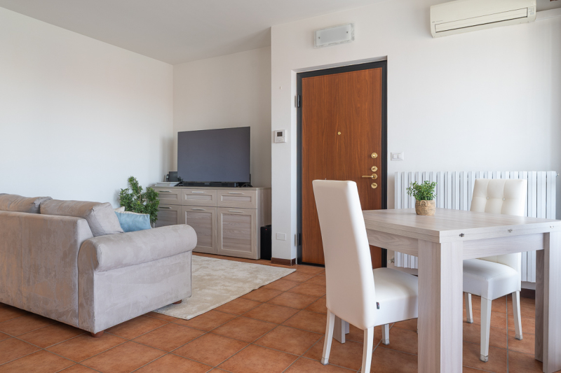 L’appartamento si presenta ad oggi ordinato ed accogliente ed è caratterizzato da ambientazioni luminose in stile moderno.