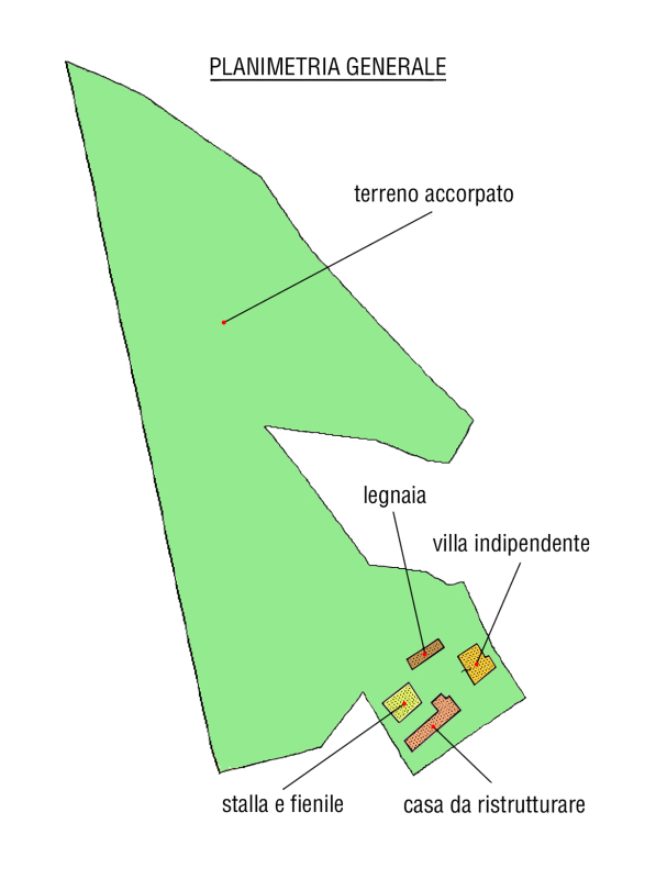 | Caratteristiche peculiari: | Villa indipendente di ampia metratura, oltre ad altri fabbricati rustici, nonchè ampio terreno agricolo accorpato: il tutto a prezzo assolutamente adeguato! |