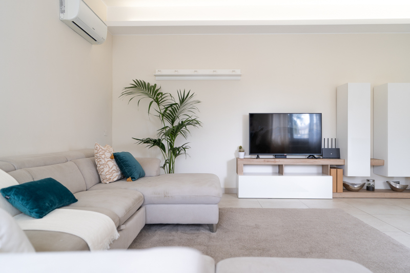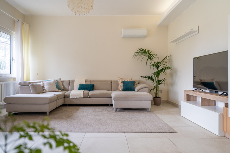 L'abitazione, oggetto di una recente e accurata ristrutturazione integrale, si distingue per un design moderno di grande gusto e per una distribuzione degli spazi interni estremamente razionale e luminosa. Il cuore della casa si sviluppa interamente su un unico piano terra, dove l'ampio soggiorno funge da fulcro centrale, separato dalla cucina abitabile e dalla zona notte tramite eleganti e moderne porte scorrevoli a tutta altezza. Quest'area padronale ospita due camere da letto matrimoniali e un bagno finemente rifinito.