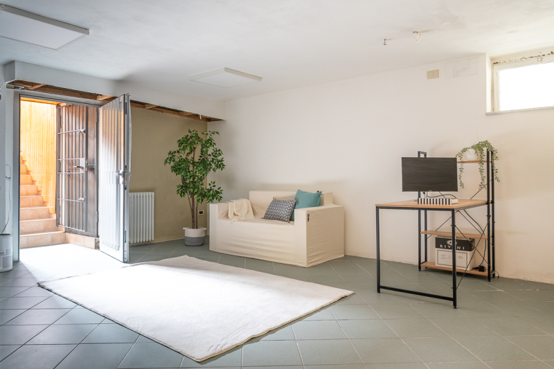Scendendo al piano inferiore, la zona taverna di 60mq amplia notevolmente la superficie abitabile offrendo una terza camera da letto, un secondo bagno, una funzionale lavanderia e un'ampia cantina.