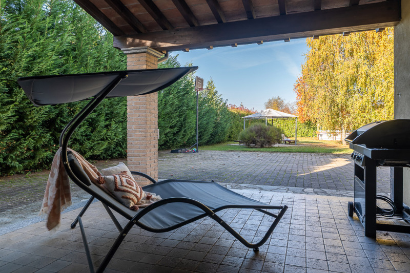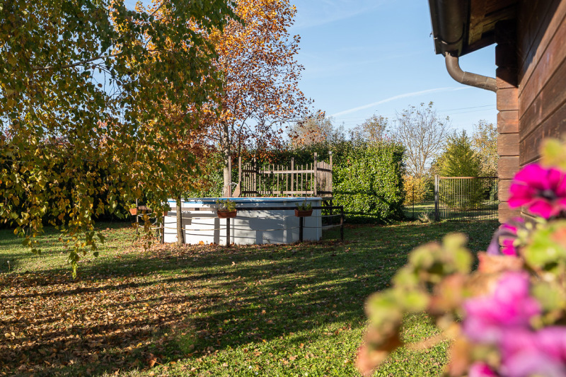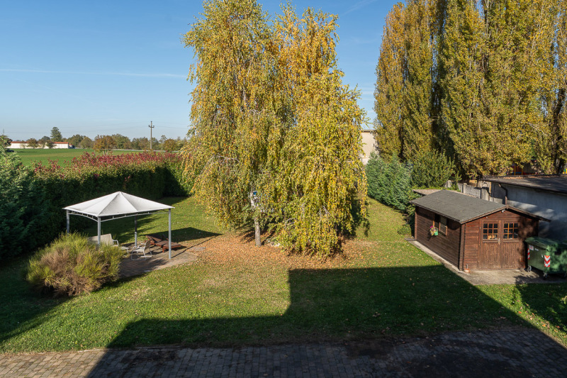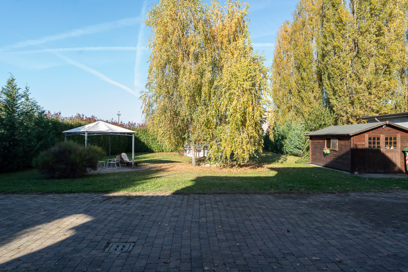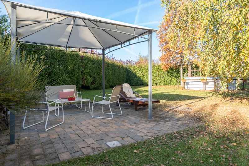 Il sedime pertinenziale accorpato e recintato all'abitazione è composto da un ampio giardino ottimamente piantumato e ben curato con sovrastante gazebo e piscina fuori terra, nonché da un ampio terreno “edificabile” attualmente ad uso frutteto e orto.