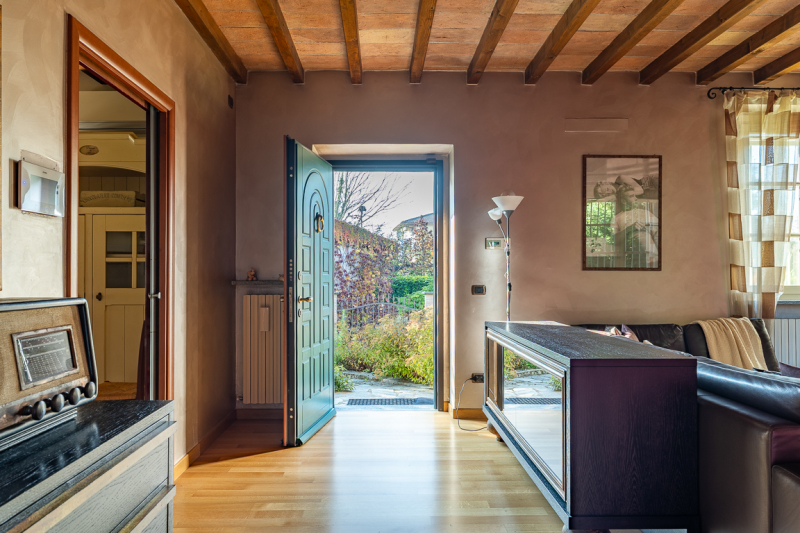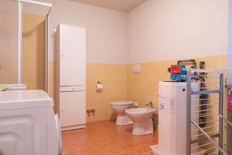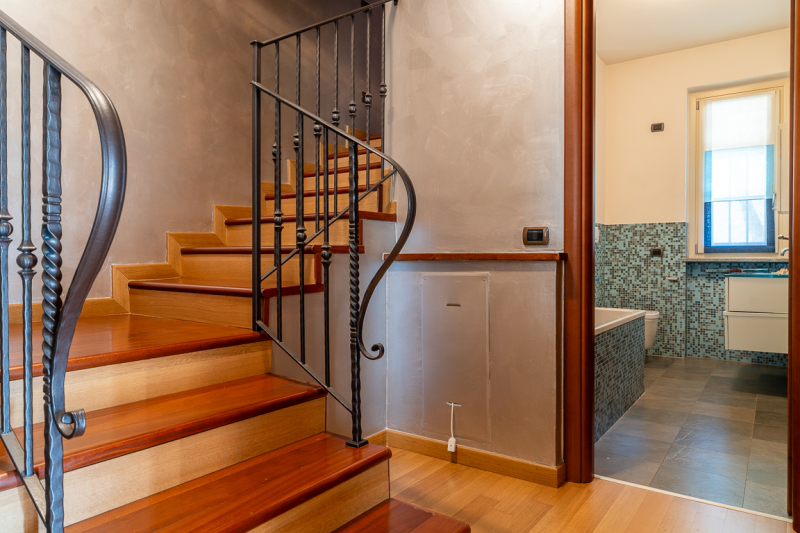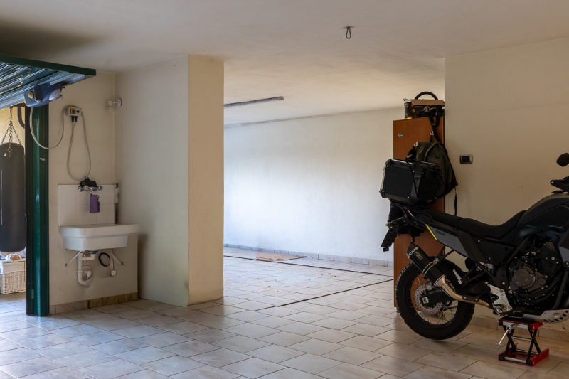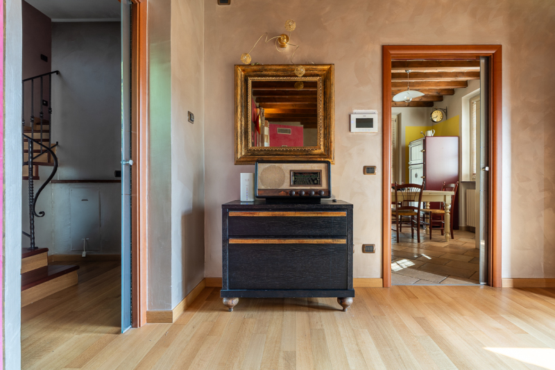 Composta da un appartamento su un unico livello al piano primo, oltre a piano terra, è attualmente così distribuita: soggiorno con camino, ampia cucina abitabile, tre camere letto, due cabine armadio, doppi servizi, e terrazzo coperto al piano primo; ampia taverna (ideale per pranzi e cene con amici), cantina, lavanderia, box doppio e porticato ad uso parcheggio al piano terra.