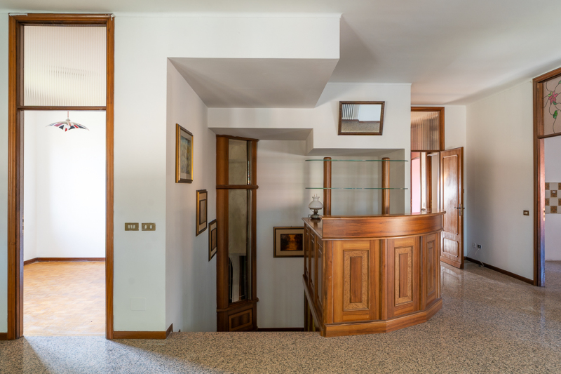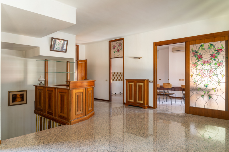 Attraverso una elegante scala interna si accede al piano superiore, dove si sviluppa un ampio salone adiacente alla cucina abitabile, anch’essa con uscita su un terrazzo vivibile.