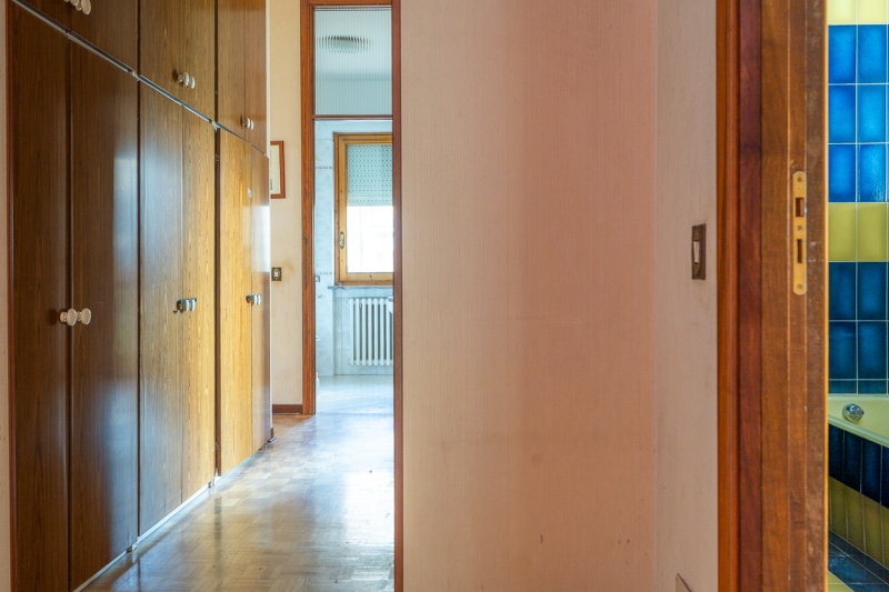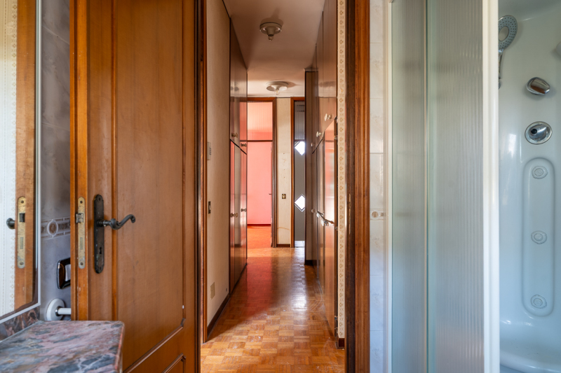 Dal disimpegno (dotato di due pratici armadi a muro) si accede alla zona notte, composta da tre camere da letto, di cui due con balcone, e da due bagni. Gli ambienti interni risultano luminosi, comodi e ben distribuiti.