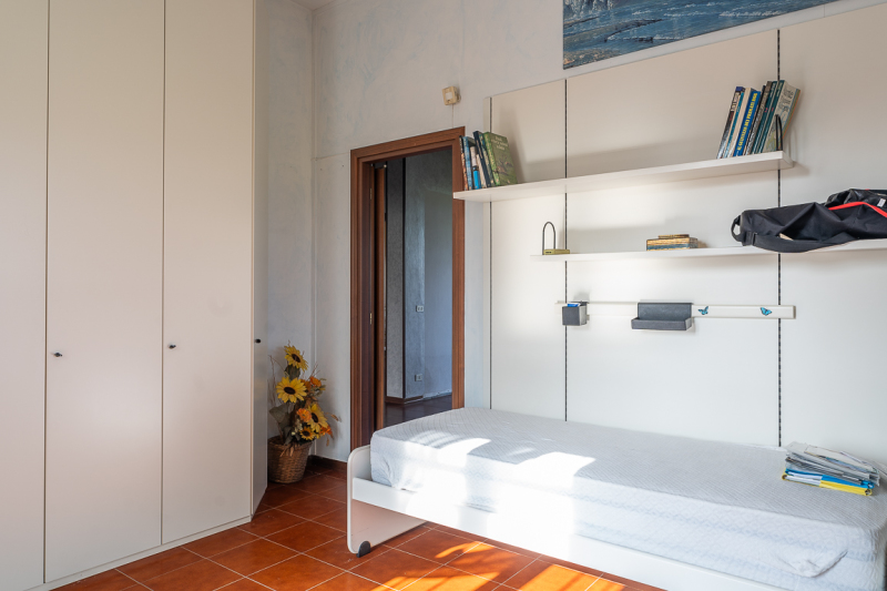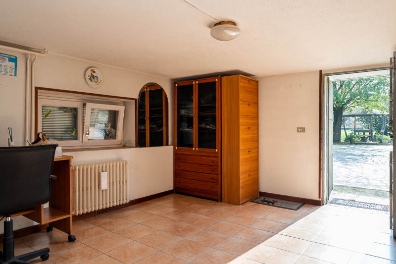 La Villa è composta da un appartamento su un unico livello al piano rialzato di circa 100 mq. commerciali, oltre a piano seminterrato di altrettanti 100 metri quadrati circa, attualmente così distribuita: ingresso, soggiorno con camino, ampia cucina abitabile, due camere letto, bagno, lavanderia e balcone al piano rialzato; taverna, studio, cantina, locale caldaia, bagno e camera al piano terra. In corpo staccato dall’abitazione un’autorimessa, un fabbricato ad uso magazzino, nonché tettoia per un paio di posti auto.