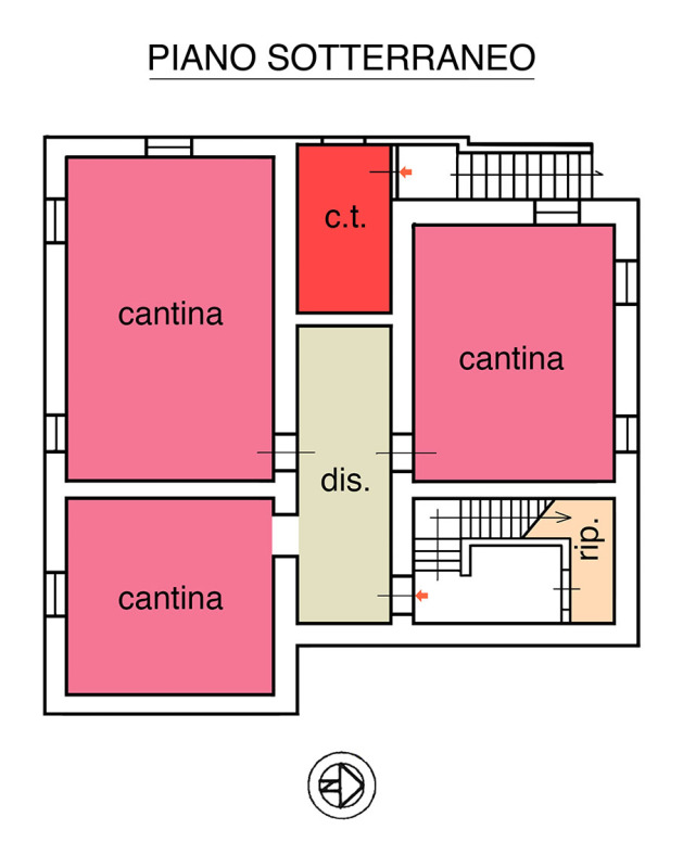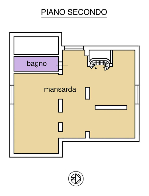 Mansarda caratteristica e ampiamente sfruttabile con servizio al piano primo. Nel piano interrato, si trovano le cantine a volta con caldaia e lavanderia.