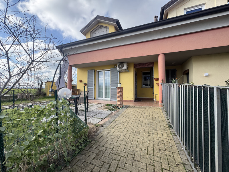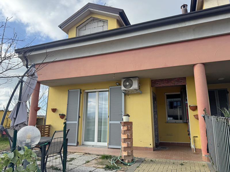 La villa è di recente edificazione, costruita nel 2012 su un lotto di circa 300mq, disposta su due livelli per un totale di circa 104mq e precisamente: al piano terra troviamo la zona giorno con cucina a vista, disimpegno, bagno e camera; al piano primo ripostiglio attualmente “al rustico e da ultimare completamente” da adibire a zona notte (solaio già presente); completano la proprietà l’area pertinenziale sui tre lati attualmente adibita a giardino e il posto auto in corpo staccato.